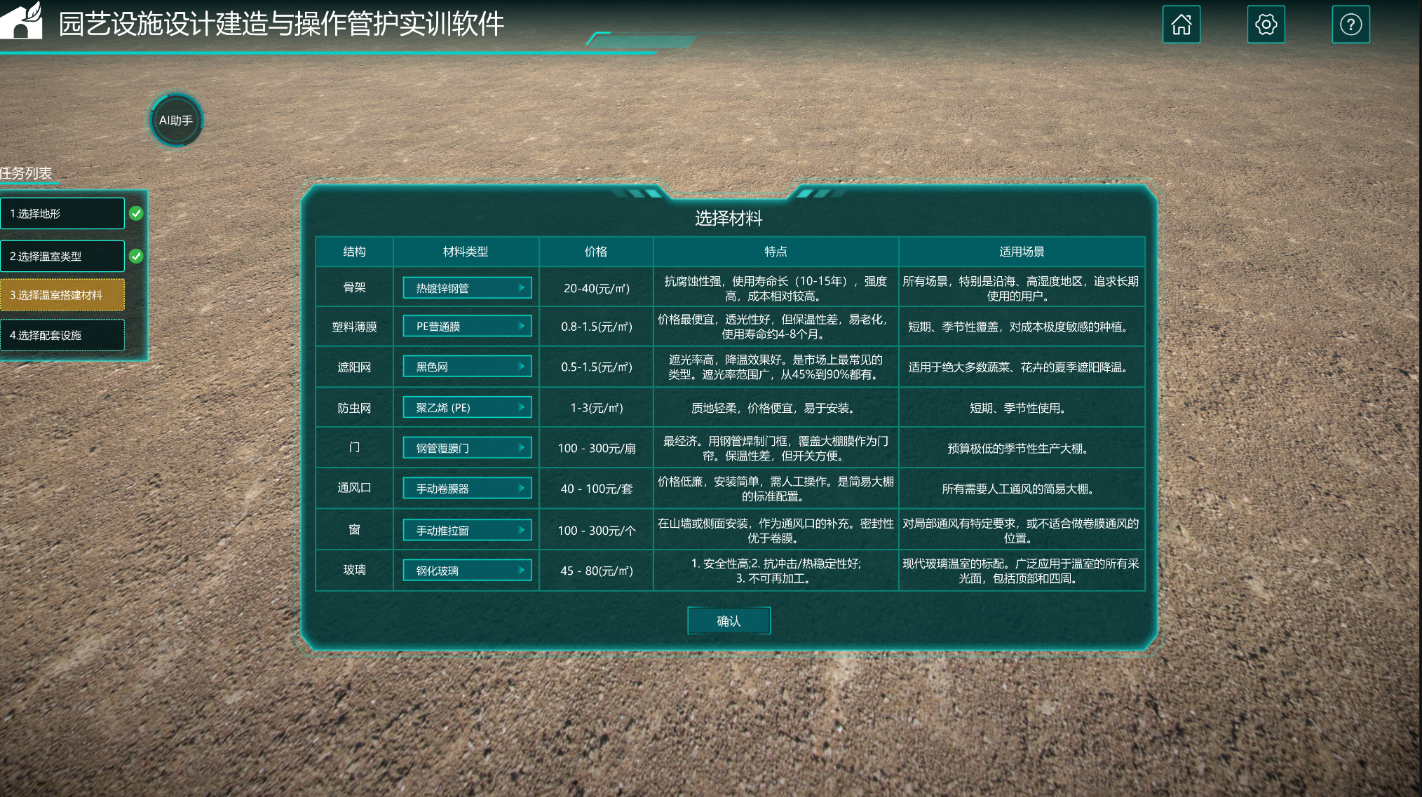为助力智慧教学发展,现开发一款园艺设施设计建造与操作管护实训软件。